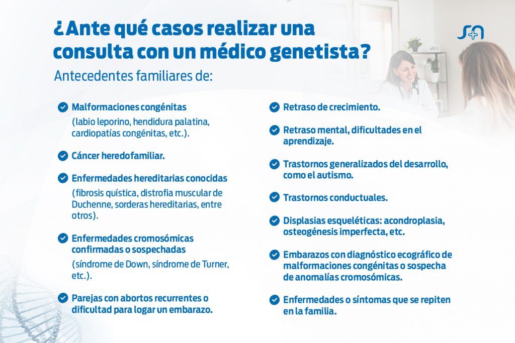 En la consulta genética, el médico averiguará los antecedentes personales del paciente, y juntos realizarán el árbol genealógico para recabar información sobre los integrantes de la familia, en lo posible abarcando las últimas tres generaciones.